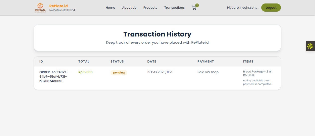 Transaction History Page