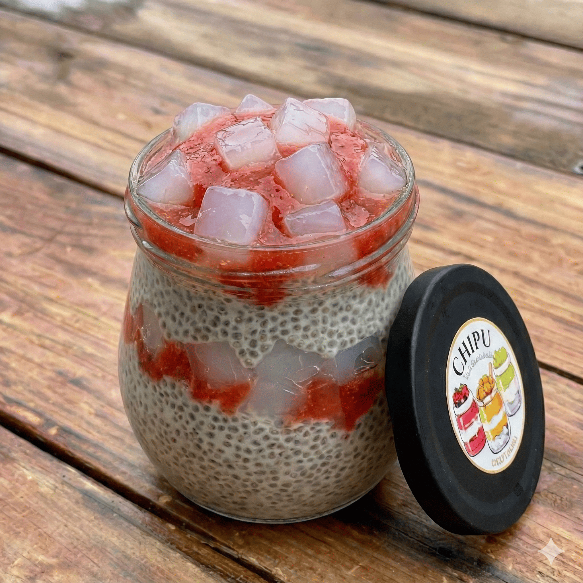 Chia Pudding With Topping Nata de Coco